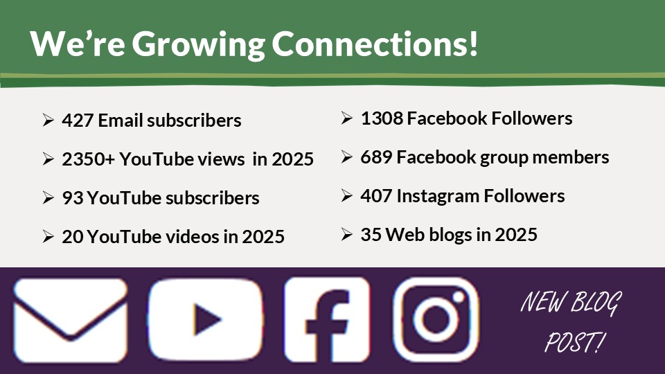 To spread our message far and wide, we are growing our connections through email subscriptions, social media, and our web blogs. If you are not following us online, we encourage you to subscribe to our YouTube channel, follow us on our chapter ‘s Facebook page, and join our Facebook group to become part of our conversations! And if you have an interest in writing posts for our social media channels or our website, please let us know. We are always looking for content!