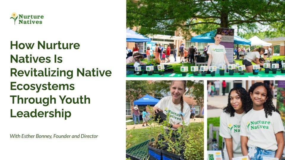 We were excited to have as our special guest, Esther Bonney, Founder and Director of Nurture Natives. Esther shared her Nurture Natives journey with us. Don’t miss the opportunity to hear Esther speak about “How Nurture Natives is Revitalizing Native Ecosystems Through Youth Leadership.”