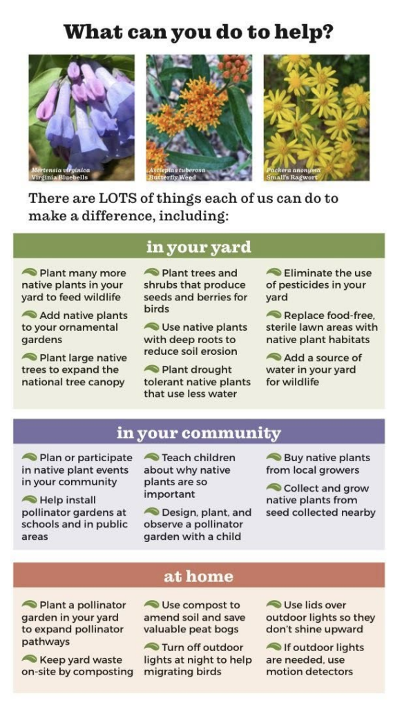 Wild Ones Chesapeake Bay is proud to be one of hundreds of organizations supporting National Native Plant Month. “Native plants are the foundation of healthy ecosystems, supporting pollinators, birds, and wildlife while strengthening the landscapes our communities depend on. Through more than 100 chapters and over 13,000 members nationwide, Wild Ones connects people and native plants through education and hands-on action. National Native Plant Month celebrates the growing community restoring native landscapes across the country.” – Jen Ainsworth, Executive Director, Wild Ones