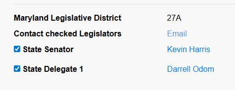 - Identify Committee Members: Now that you have the names of your Senate and House representatives, identify if your representatives are on the one or both of the committees hearing the bill. HB 0217 is being heard by the GLE Committee, whose members are listed here and choosing Membership. (Neither of my representatives, Harris or Odom, are on the GLE committee.) SB 0229 is being heard by the EEE Committee, whose members are listed here and choosing Membership. (Delegate Harris from District 27 is on this committee, so I will direct my communications to his office.)
