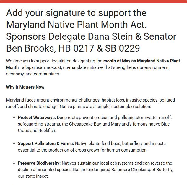 A Call to Action: Support the Maryland Native Plant Month Act – Wild Ones Greater Baltimore Chapter