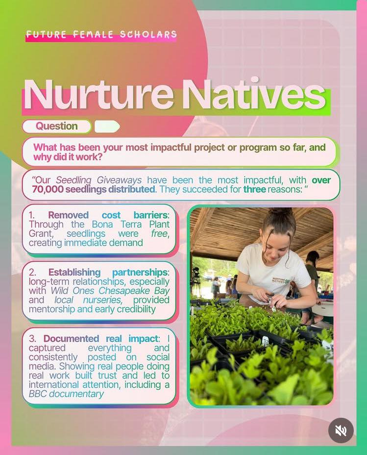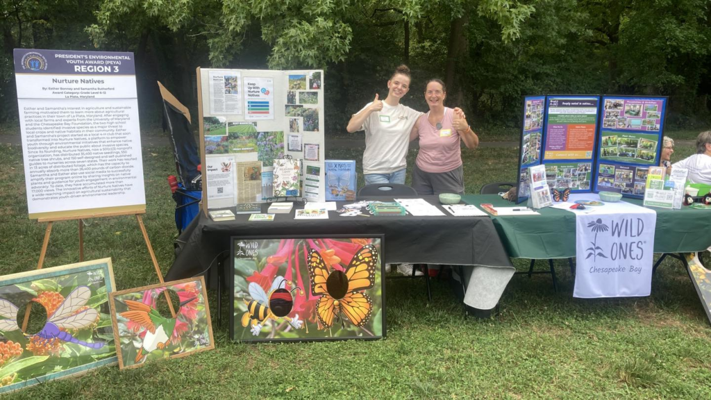 Esther Bonney, I am so fortunate that our paths crossed several years ago. When we met at the first NatureFest in May 2021 and then again at the Rotary Interact club through NCAC and 4H in January 2022, I could never have imagined the journey we would take together. Growing Nurture Natives from a 4H project to your own non-profit was an inspiration for me to take the leap to founding Wild Ones Chesapeake Bay. And together we are making a difference, along with all the other wonderful friends and supporters we’ve met along the way. Thank you for sharing your journey with us; we have so many memories together! I can’t wait to see what’s in store for us in 2026 and how far your passion for biodiversity and youth mental health take you in the future! ~ Marlene Smith, Wild Ones Chesapeake Bay President