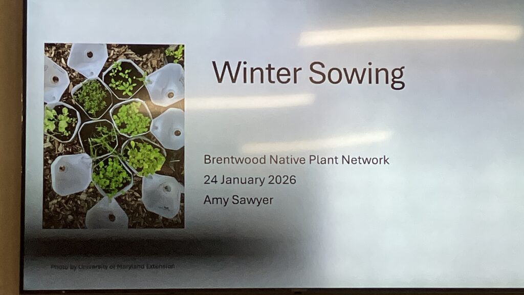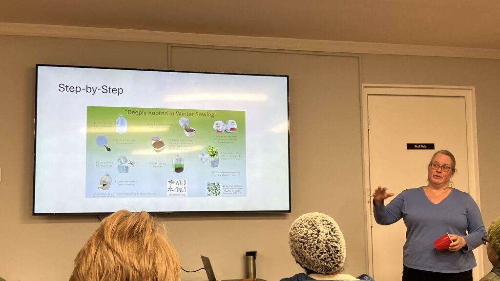 We took a break from hosting community winter sowing workshops the past couple of months, and instead watched several webinars on winter sowing to see if we could learn new tips from other winter sowing enthusiasts. We also attended a local “Gardening with Native Plants” workshop on Saturday, January 24, hosted by the Brentwood Native Plant Network and sowed a few milk jugs during their winter sowing portion of the workshop.