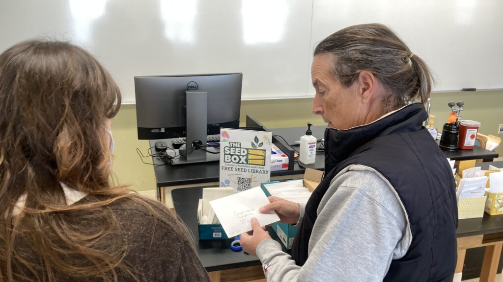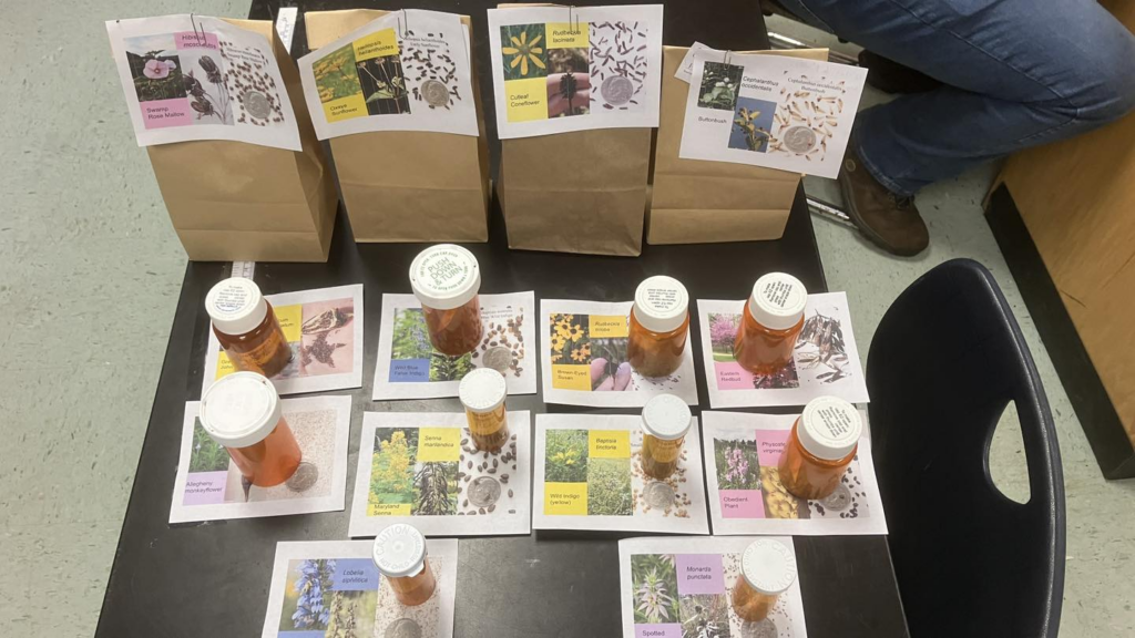 On Friday, October 10, 2025, we joined chapter members Maddie Kaba and Tracy Stuller at the College of Southern Maryland (CSM) for a seed cleaning workshop. And we returned again on Wednesday, November 5, to help package our native seed donation for the Seedbox, CSM’s Seed Library.