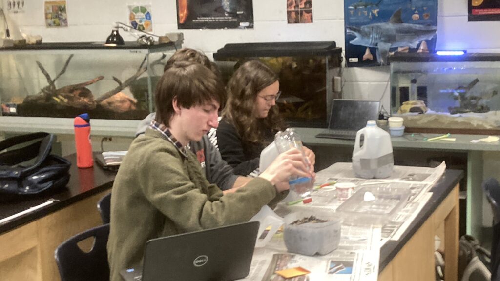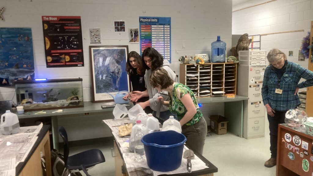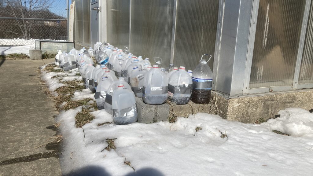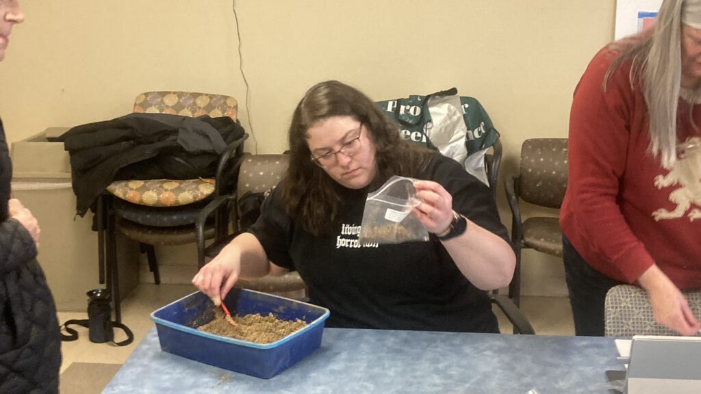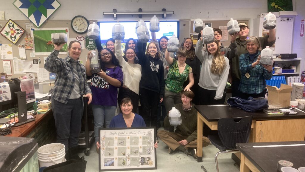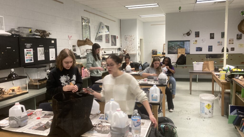 Wednesday, February 4, and Monday, February 9, found us back at Forrest Tech for winter sowing workshops with the students in the Natural Resources Management. Chapter members Marlene, Bill, Dorothy (their teacher), and Deb assisted the students in winter sowing 85 milk jugs of native seeds. Their goal is to grow native plants for their spring plant sale and to plant in the new gardens they are establishing on the school campus.