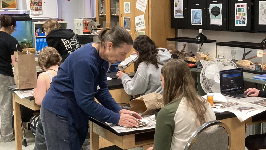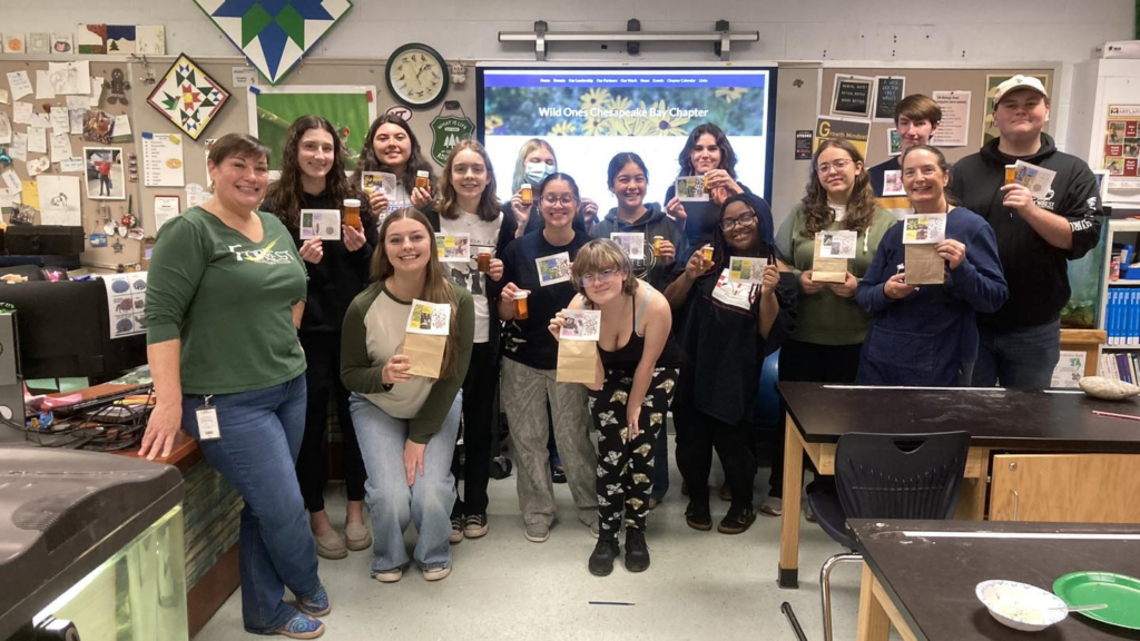 On Tuesday, November 25, 2025, we had the pleasure of teaching seed cleaning techniques to students in the Natural Resources Management class at Dr. James A. Forrest Career and Technology Center in Leonardtown. Students learned about manually separating seeds from chaff, using methods like threshing and sieving. Thirteen students and a substitute teacher cleaned fourteen species of native plant seeds that will be distributed through a variety of chapter activities and events over the next year. After cleaning seeds, we were invited to join the students in their Thanksgiving potluck. Thank you for your hospitality! And special thanks to teacher and chapter member Dorothy Birch for inviting us back for our third year to work with her wonderful students.