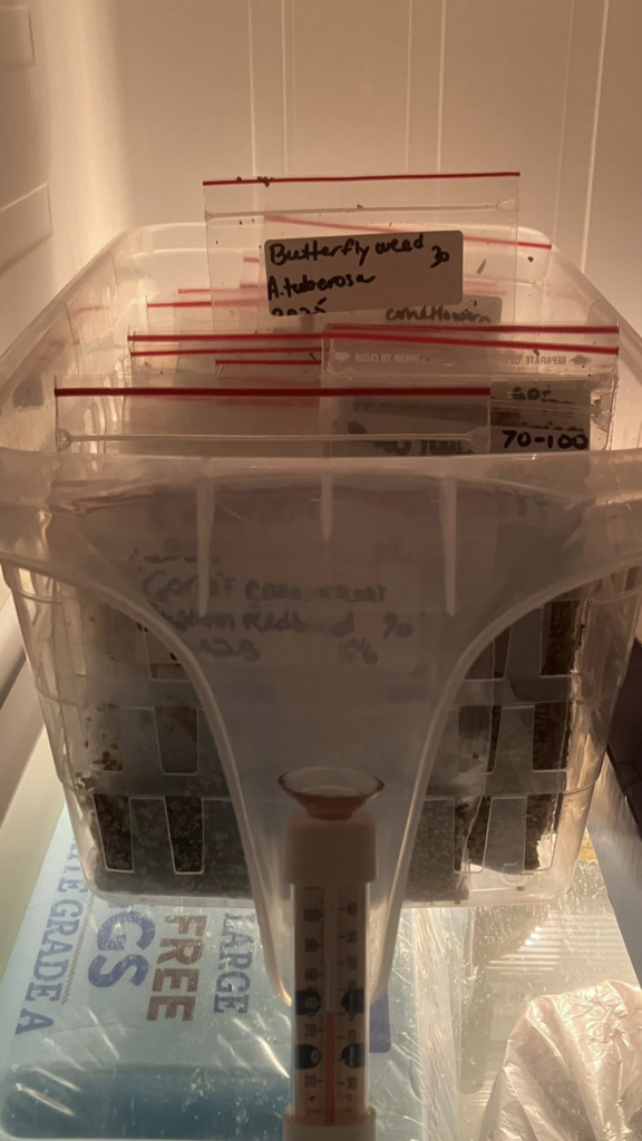 Seed stratification is well underway this winter, beginning in January with seeds going into wet vermiculite at members’ homes and at Providence Greenhouses, our partner propagation site this year. Marlene began stratifying over 4 dozen varieties or native plant seeds in early January for chapter projects and activities in the coming months.
